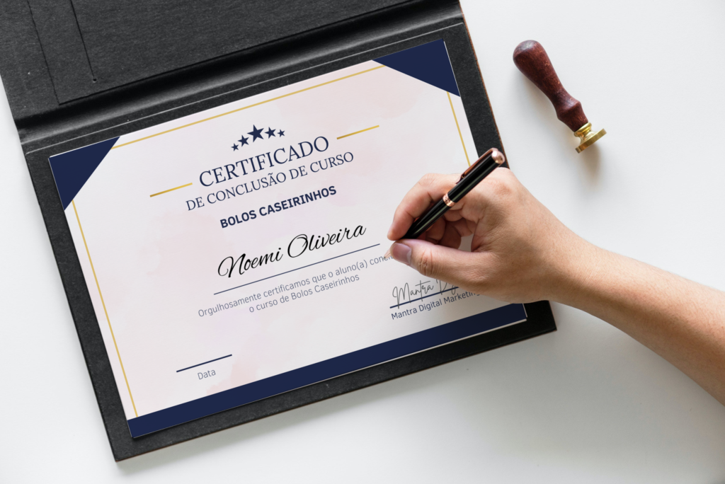 Você vai ter acesso a este lindo certificado disponível com seu nome em sua área restrita após concluir o curso.